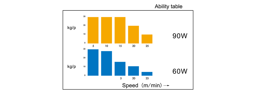 | 1,000 ~ 4,000 | Fixum celeritate 60W, variabilis celeritate 90w |