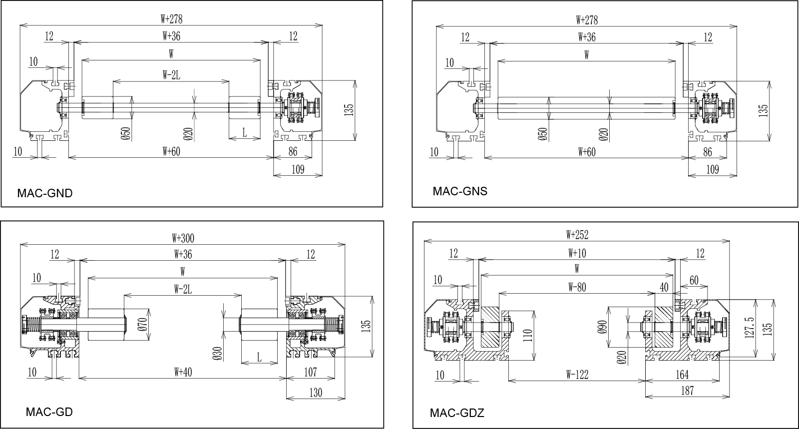 | Genus | Mac, GND (continua Shaft Type) | Mac, GNS (Type) | Mac, GD (Cantilevered structuram) | Mac, GDZ (Officium Type) |