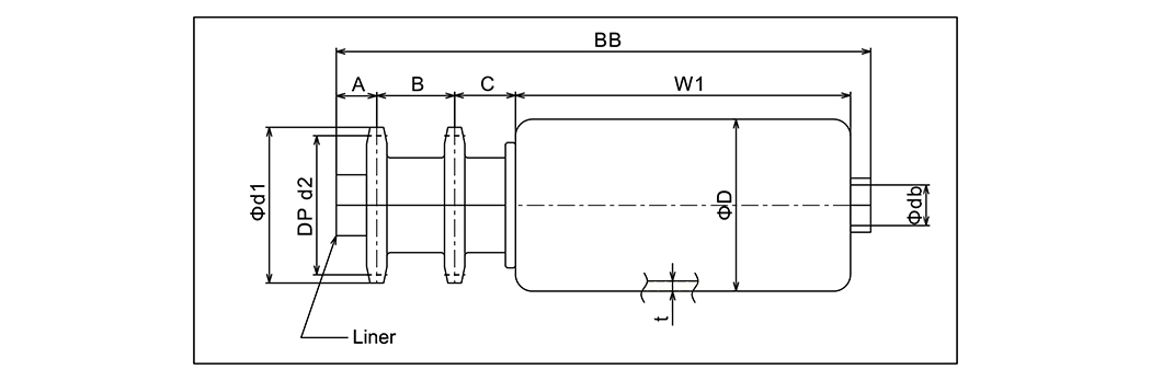 | Genus | Rollerus Location | Rollerus Width | Rollerus Material | Adferens | Shaft Diameter | Liner magnitudine | Sprocket | D1 | D2 | A | B | C | W1 | Bb |