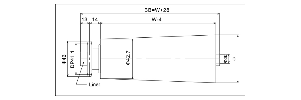 | Genus | Rollerus Location | Rollerus Width | Rollerus Material | Adferens | Shaft Diameter | Liner magnitudine | Sprocket | d | D2 | A | B | W1 | Bb |