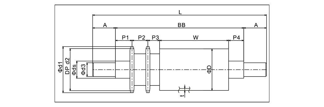 | Genus | Rollerus Location | Rollerwidth | Roller Matenal | Beati | Shaft Diameter | Sprocket | D1 | D2 | D3 | A | L | Bb | P1 | P2 | P3 | P4 |