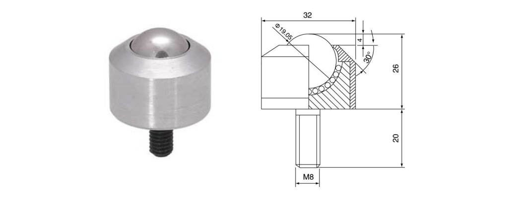| D-6h (XIX) | 6105 | BS / CS | 40 | 50 | 19.05 | 32 | 26 | 4 | 20 | M8 | 0.130 |