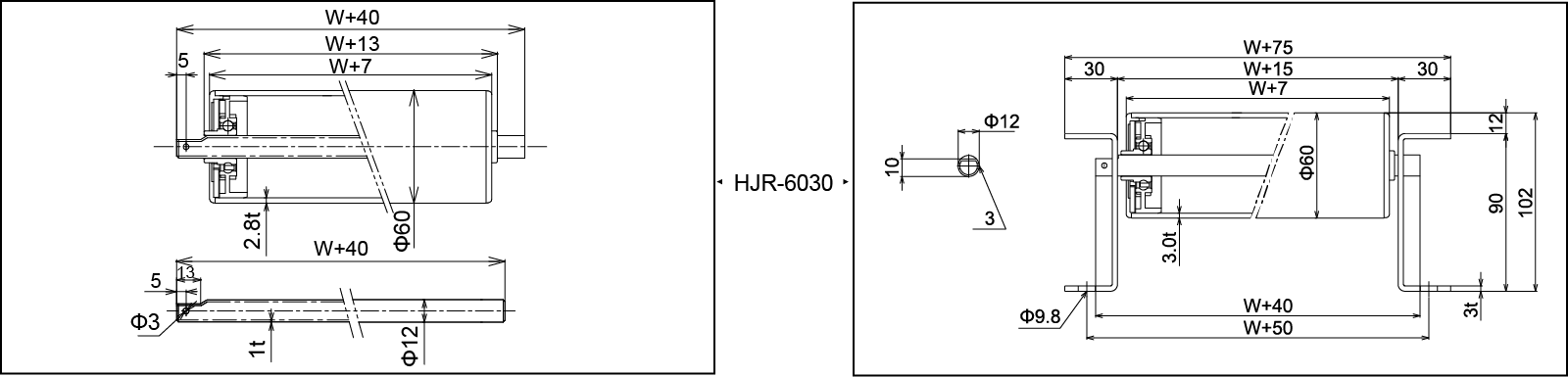 | Width Rollerus W (mm) | 100 | 200 | 300 | 400 | 500 | 600 | |