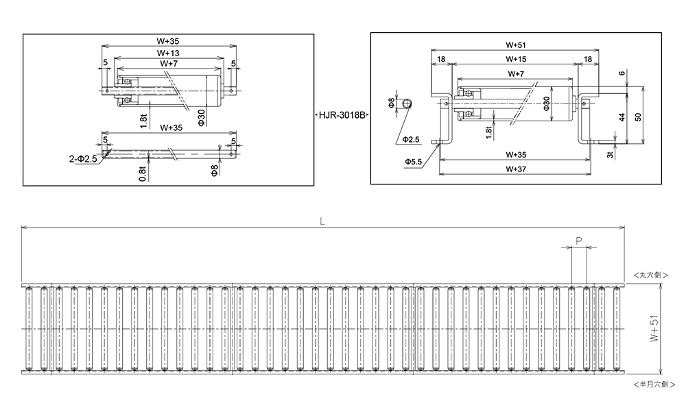 | Width Rollerus W (mm) | 100 | 200 | 300 | 400 | 500 | |