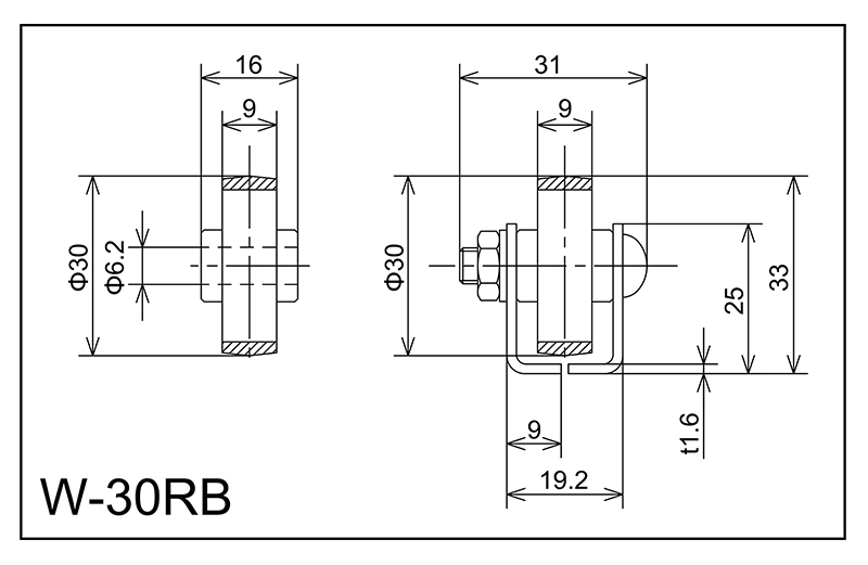 | W-30RB | 30x9x6.2x16 | M6x27l | 25x19.2x9x31x1.6 | 33 | M MD MD · · MM | 35 | 25 | A | Nbr |
