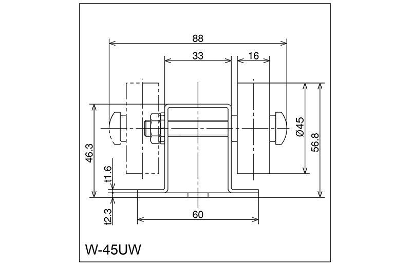 | W-45uw | XLV × XVI x VIII × XXII | M8 × 65L | 46.3 × LX × XXXIII × LXXXVII × 1.6 2.3 | 56.8 | MDCCC MMCD · MMM | L LXXV · C · CL | 25 | Abs |